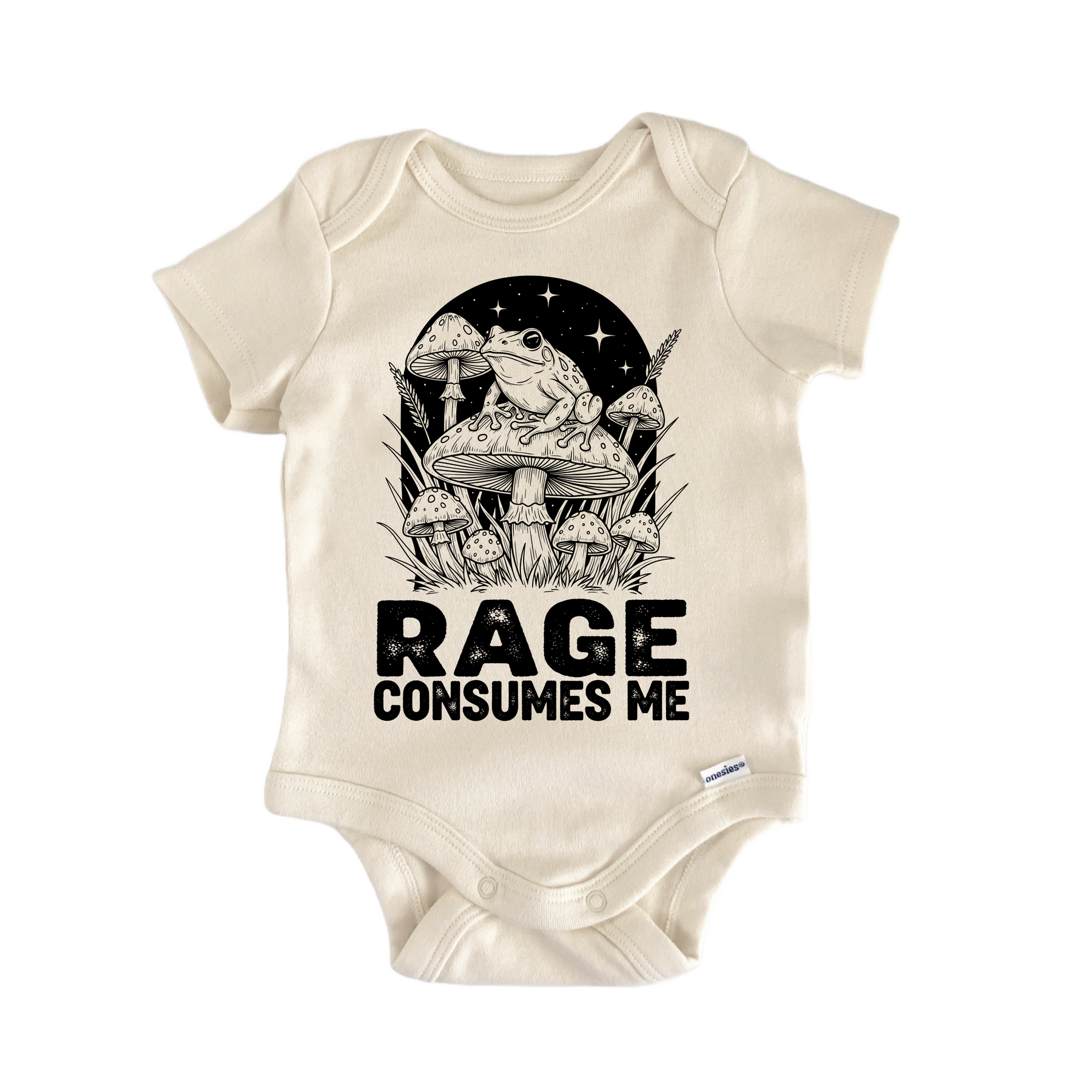 Parents choose Rage Consumes Me Frog Newborn Baby Onesie® Bodysuit for milestone photos, family visits, and everyday routines because it balances quality, style, and simplicity. It’s registry‑ready, giftable, and easy to care for—just toss it in the wash and it’s ready for more cuddles. Dress it up with a cardigan, add a cozy hat, or keep it minimal for that clean newborn look—this versatile staple fits right into real life with a baby.