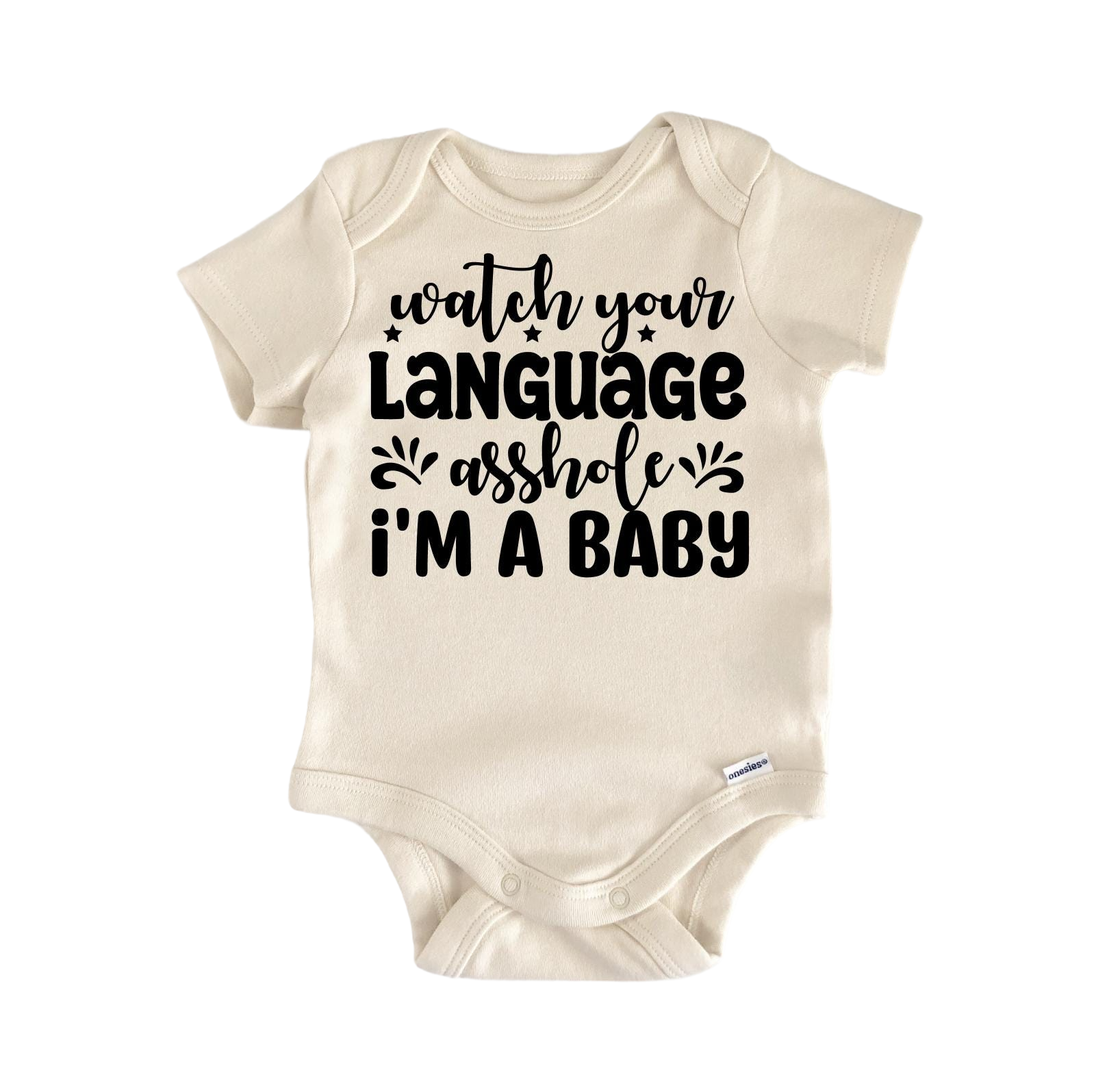Parents choose Watching Your Language Newborn Baby Onesie® Bodysuit for milestone photos, family visits, and everyday routines because it balances quality, style, and simplicity. It’s registry‑ready, giftable, and easy to care for—just toss it in the wash and it’s ready for more cuddles. Dress it up with a cardigan, add a cozy hat, or keep it minimal for that clean newborn look—this versatile staple fits right into real life with a baby.